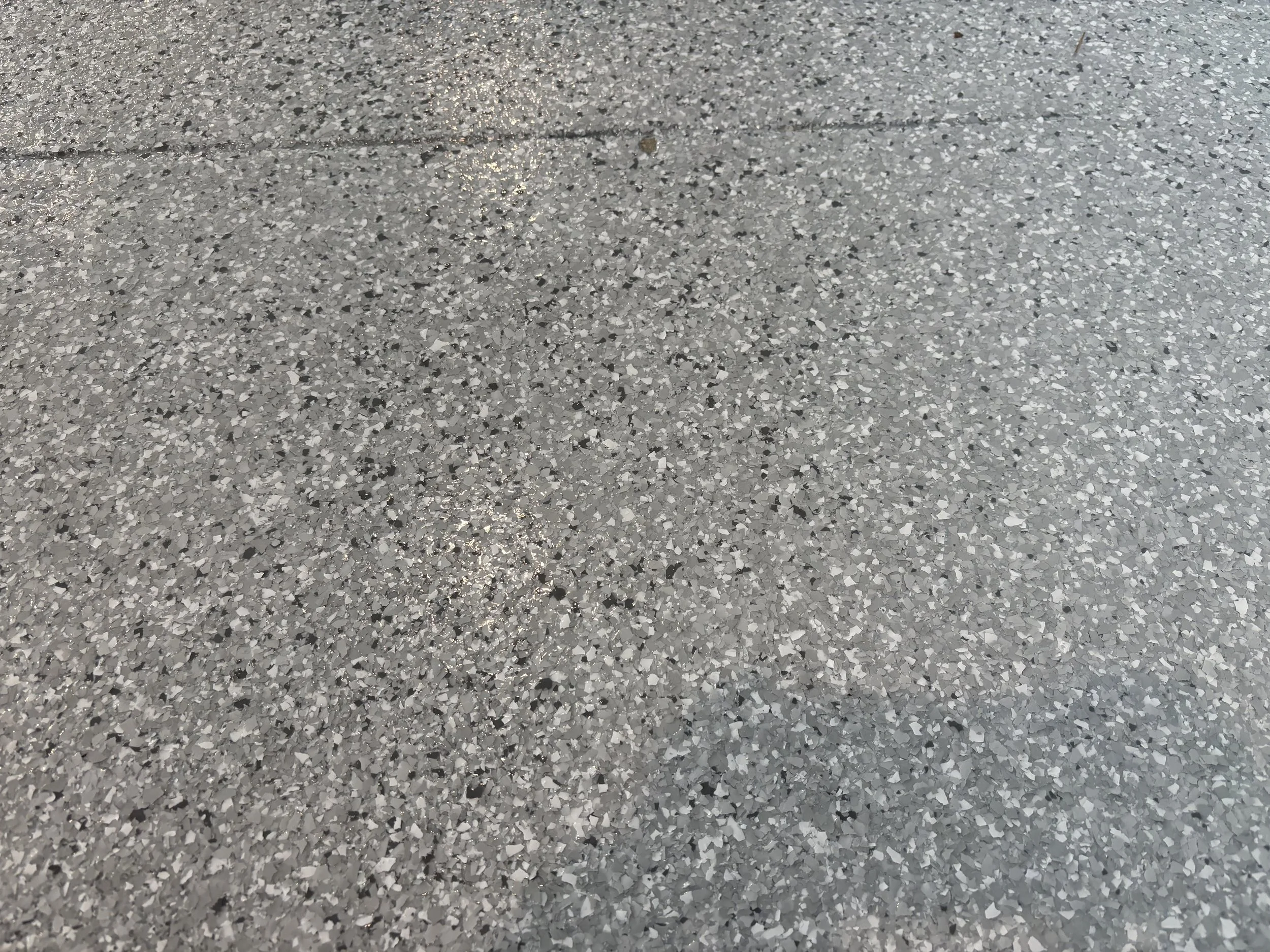Flakes provide a durable high-performance resinous flooring environment with an orange-peel texture that increases the slip resistance and safety. The flake flooring system is perfect for residential applications, such as garages, driveways, sidewalks and much more. The flake flooring system is wax free and economical to upkeep with just soap and water. Flakes are an economical flooring solution that naturally hides concrete imperfections while enhancing and protecting any decor. After years of use, efficiently revitalize your floor by sanding the surface and applying a new top coat.